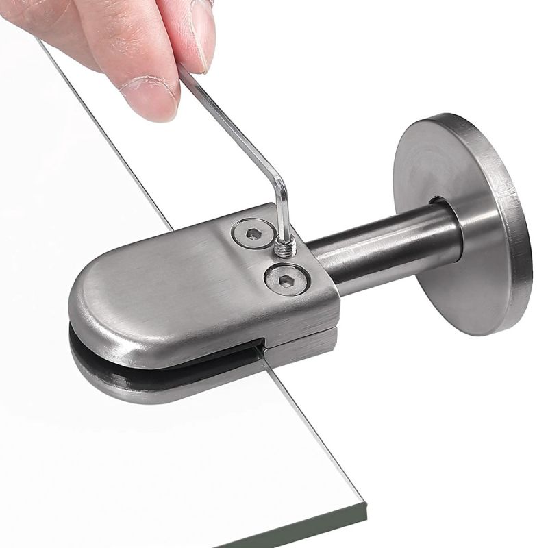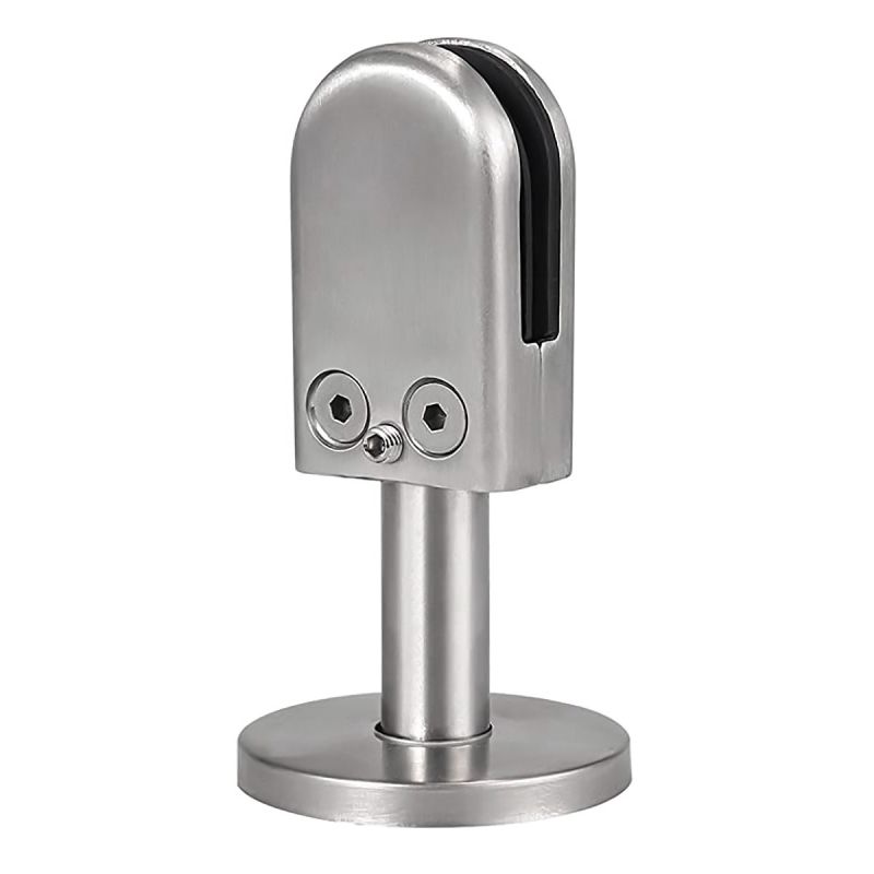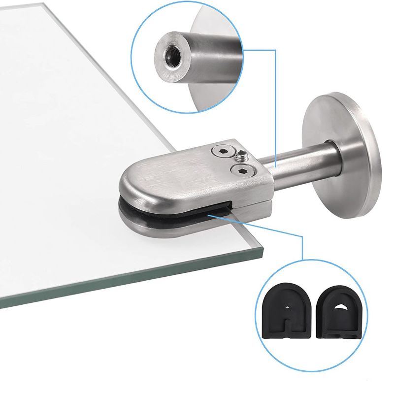 Abrazadera embellecedora para sujetar firmemente planchas de metacrilato separando la plancha del suelo, pared o techo.