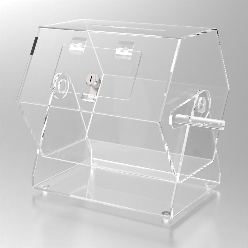 Urna giratoria de metacrilato especialmente indicada para eventos y sorteos.